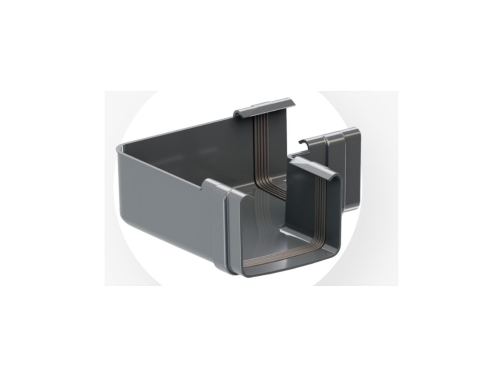 Umožňuje těsně spojit dva čtvercové žlaby umístěné pod úhlem 90 stupňů. Díky univerzálnímu charakteru se může používat ve vnitřních i vnějších rozích budovy.